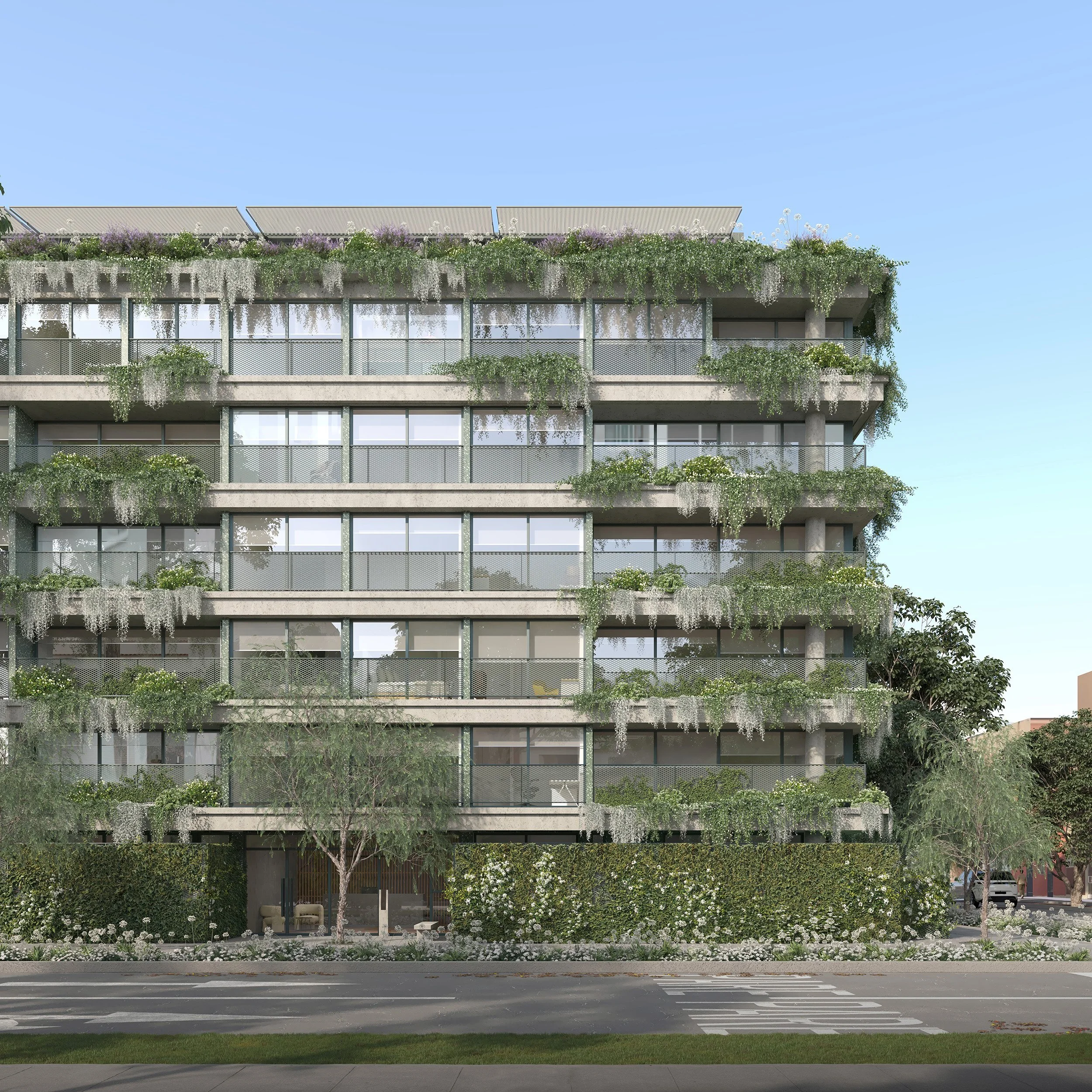 Uno de los sellos más visibles de esta transformación ha sido el paisajismo interior y exterior, presente en todos nuestros proyectos en Lord Cochrane. No se trata solo de sumar vegetación, sino de hacer del verde una parte esencial del bienestar diario, desde los ingresos arbolados hasta las terrazas privadas. El diseño bioclimático y la ventilación cruzada también han sido parte fundamental para asegurar bienestar, confort y eficiencia.
